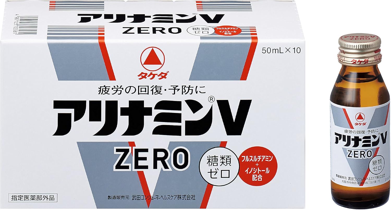 「アリナミンV ZERO」はアリナミンVの糖類を抑えた栄養ドリンク。アリナミンと成分はほとんど同じですが、「イノシトール」を400mg配合。