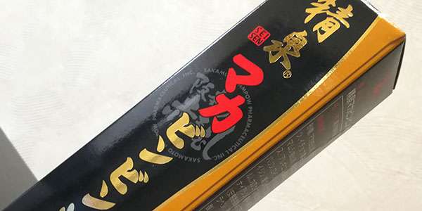 精泉マカビンビン液の外観は、黒のベースにゴールドの文字。赤で「マカ」と書かれています。パッケージは横から開くことのできるタイプですが、中が赤が出てきます。なんとも禍々しいですね。